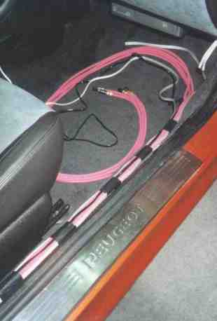 Die Signalkabel (Chinch, Lautsprecher und Basspegelfernbedienung) habe ich auf der Beifahrerseiter im Schweller entlanggelegt. Die Cinchkabel führen hinter dem Handschufach entlang zum Radioschacht.