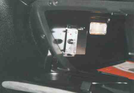 Unter das Handschuhfach installierte ich einen CD-Wechsler von Pioneer. Ich schraubte ihn mit 4 Maschinenschrauben durch den Boden an. | |